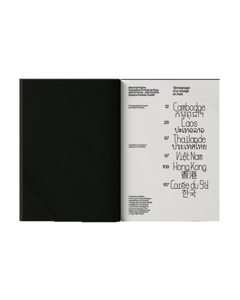The exhibition was accompanied by a book containing additional photographs and typographic illustrations, designed entirely by my brother Léo Rosina.